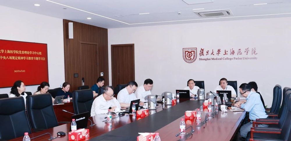 6月4日上午,复旦大学上海医学院党委理论学习中心组开展专题学习研讨,深入学习领会党的十八大以来深入贯彻中央八项规定精神的有效做法、显著成效和宝贵经验,推动健全作风建设常态化长效化制度机制建设,以优良党风政风助力医学院高质量发展。复旦大学党委副书记、上海医学院党委书记袁正宏主持会议并讲话,校长、上海医学院院长金力及中心组全体成员参加学习研讨。