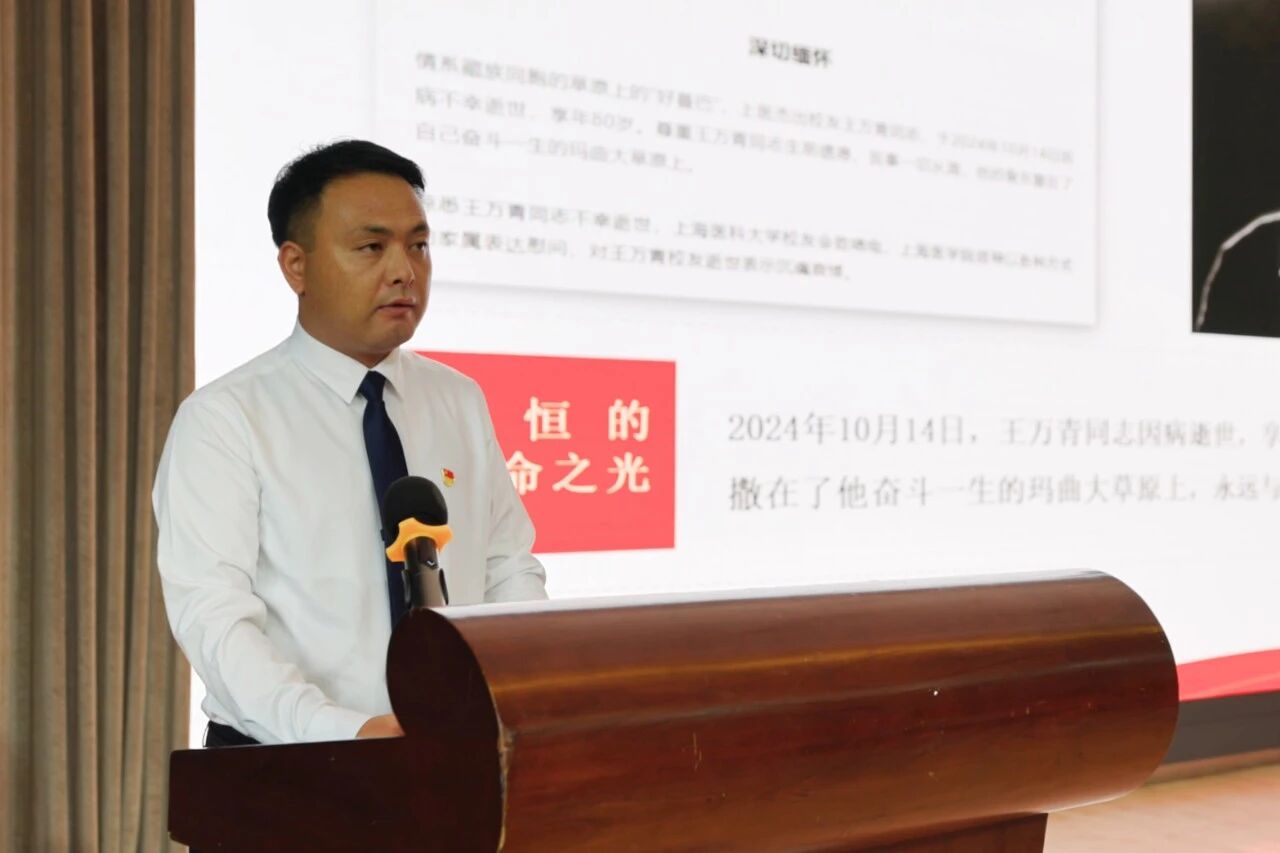 敬意与思念交织的金秋,来自甘肃省甘南藏族自治州玛曲县的王万青同志先进事迹巡回宣讲报告团,将走出甘南的第一站选在了王万青的母校上医。5位成员以最朴实的语言、最鲜活的细节,从不同视角为现场听众还原了王万青在草原上的平凡与伟大。